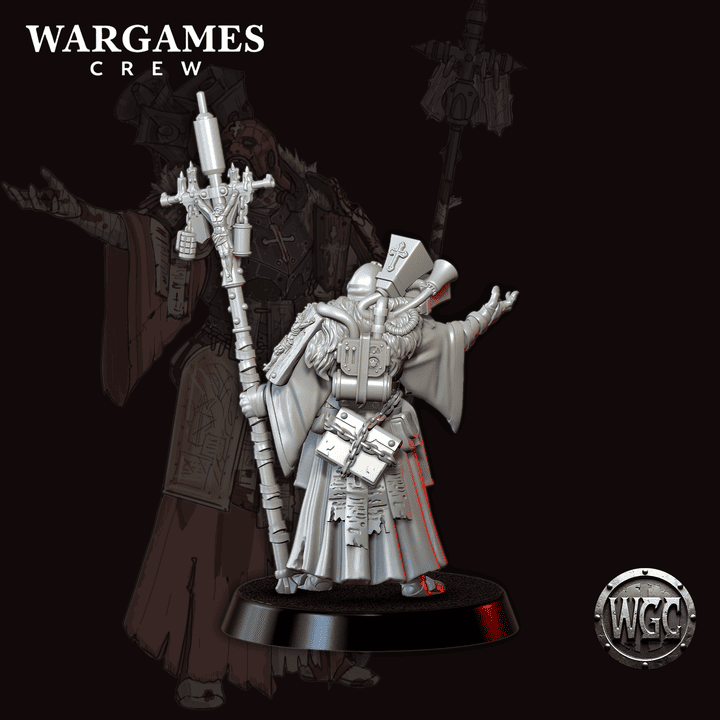 The Herald claims no authority but suffering itself. His cracked loudspeakers, strapped with worn leather and saintly charms, project his hoarse proclamations across the trenches. He speaks not of Armageddon, but of a long, sacred descent: a journey through pain that must be completed so the soul may be proved worthy.