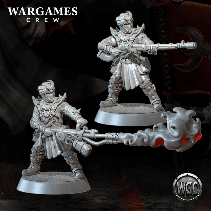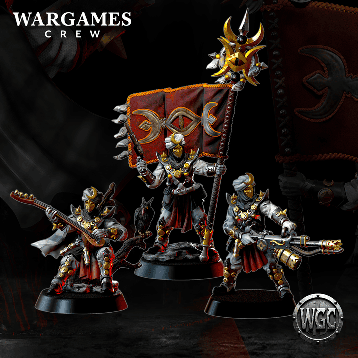 Three models – “Murideen acolytes Command”, designed by Wargames Crew