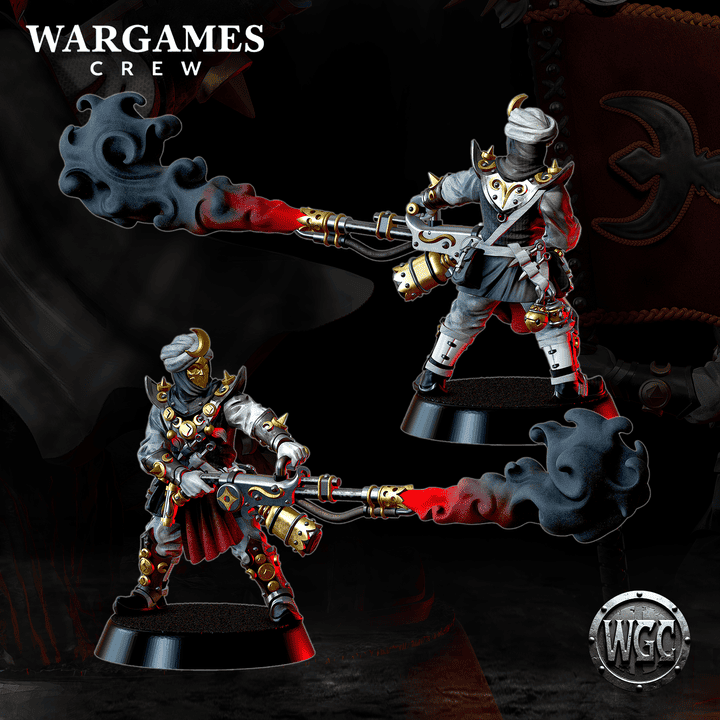 The third model offers two weapon options: a flamethrower and a jezail rifle.