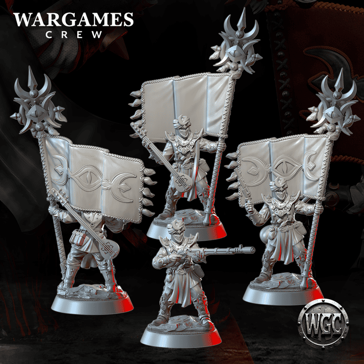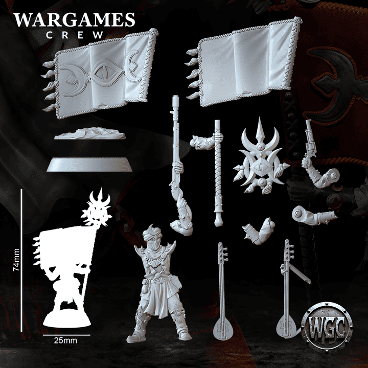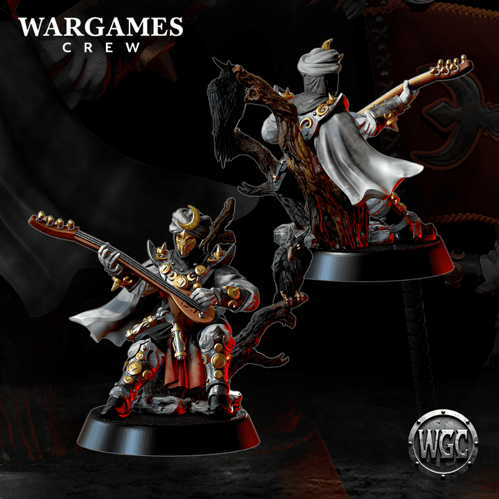 The first model is the standard bearer and comes with multiple options: two banner designs, two variants of the Saz musical instrument, and a jezail rifle.